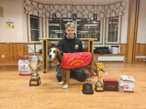 Kokeen voitti FI28161/19 Mehtälaulun Hertta ohjaajanaan 19 vuotias Olli Väätäinen Pohjois-Savon kennelpiiristä. Pisteet 87.21. Toiseksi tuli FI35063/22 Vehmasmäen Varma ohjaajanaan 7 vuotias Paavo Saarimaa Keski-Pohjanmaan kennelpiiristä. Pisteet 76.63. Kolmanneksi tuli FI28104/21 Puskajussin Ronja ohjaajanaan 17 vuotias Jonne Pääkkönen Pohjois-Karjalan kennelpiiristä. Pisteet 52,71.